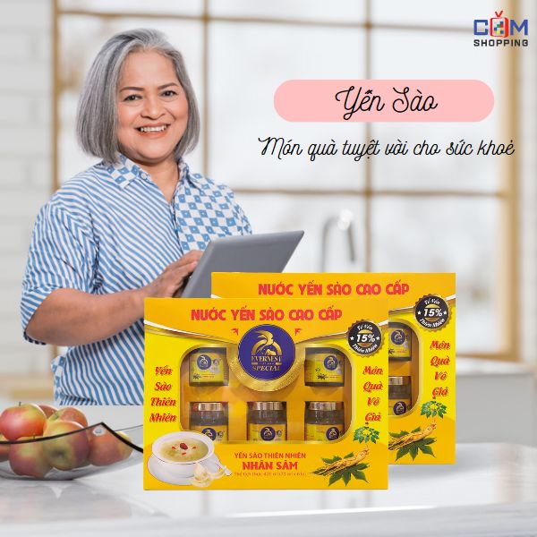 - Quà Sức Khỏe: chính là lựa chọn số 1 khi muốn mua quà 8/3 tặng bà hay mẹ. Người cao tuổi chỉ cần sức khỏe đủ đầy và vui vẻ bên con cháu; còn những món quà xa xỉ khác lại không còn cần thiết nữa. Nên cũng không có gì làm lạ khi những nhãn hàng yến sào, hồng sâm, đông trùng hạ thảo,... thường dành riêng các dòng nâng cấp, bổ sung thêm dưỡng chất cho team “trưởng lão”.
