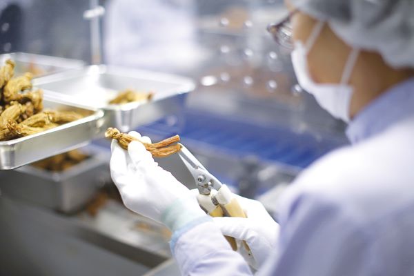 Hồng sâm sau khi sấy khô sẽ được kiểm tra, tỉa hết rễ, chỉ để lại phần thân tinh túy nhất