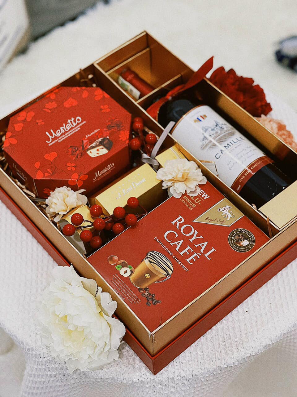 Ngày nay, các hộp quà Tết đều được thiết kế đa dạng và sang trọng, bên trong được thay đổi rất nhiều các món ăn, uống như: nước ngọt, bánh kẹo, rượu, hạt dinh dưỡng, tổ yến, nhân sâm,... nên bạn có thể dễ dàng chọn mua, tùy vào cấp bậc khách hàng.