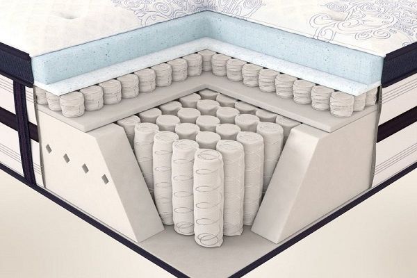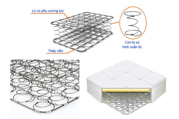 Nệm lò xo được cấu tạo từ nhiều lò xo bọc trong lớp mút hoặc lớp vải. Kết cấu linh hoạt giúp nó đáp ứng tốt các yêu cầu về hỗ trợ cơ thể và giảm thiểu áp lực trên cơ thể khi nằm. Ngoài ra, nệm lò xo còn có khá thông thoáng, giữ cho người nằm luôn thoải mái và dễ chịu.