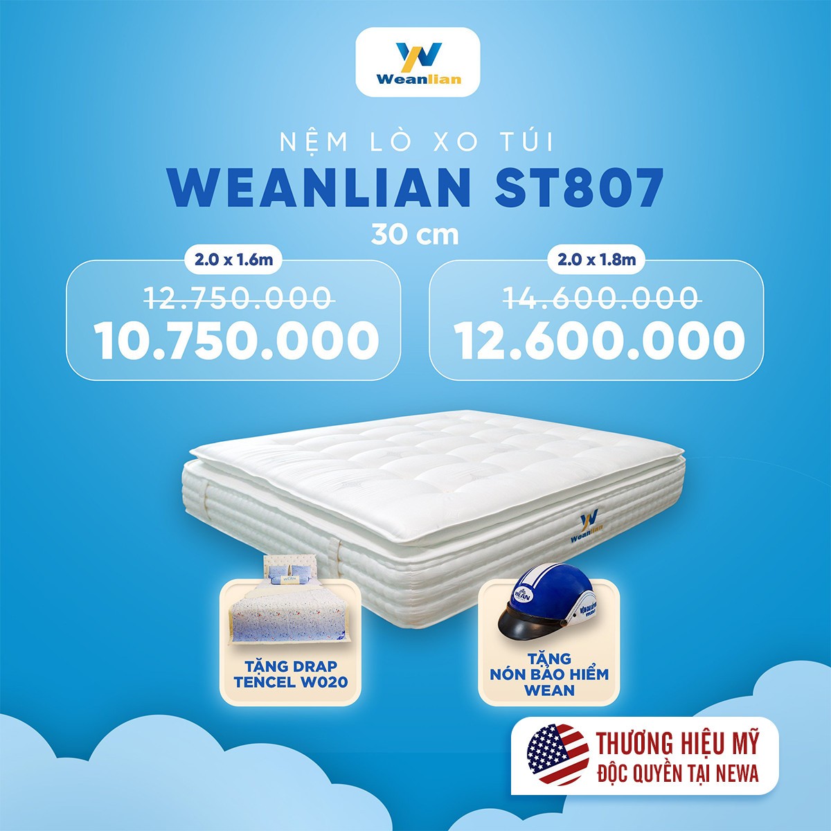 Nệm lò xo túi độc lập weanlian 30cm #st807 được bảo hành chính hãng 10 năm.